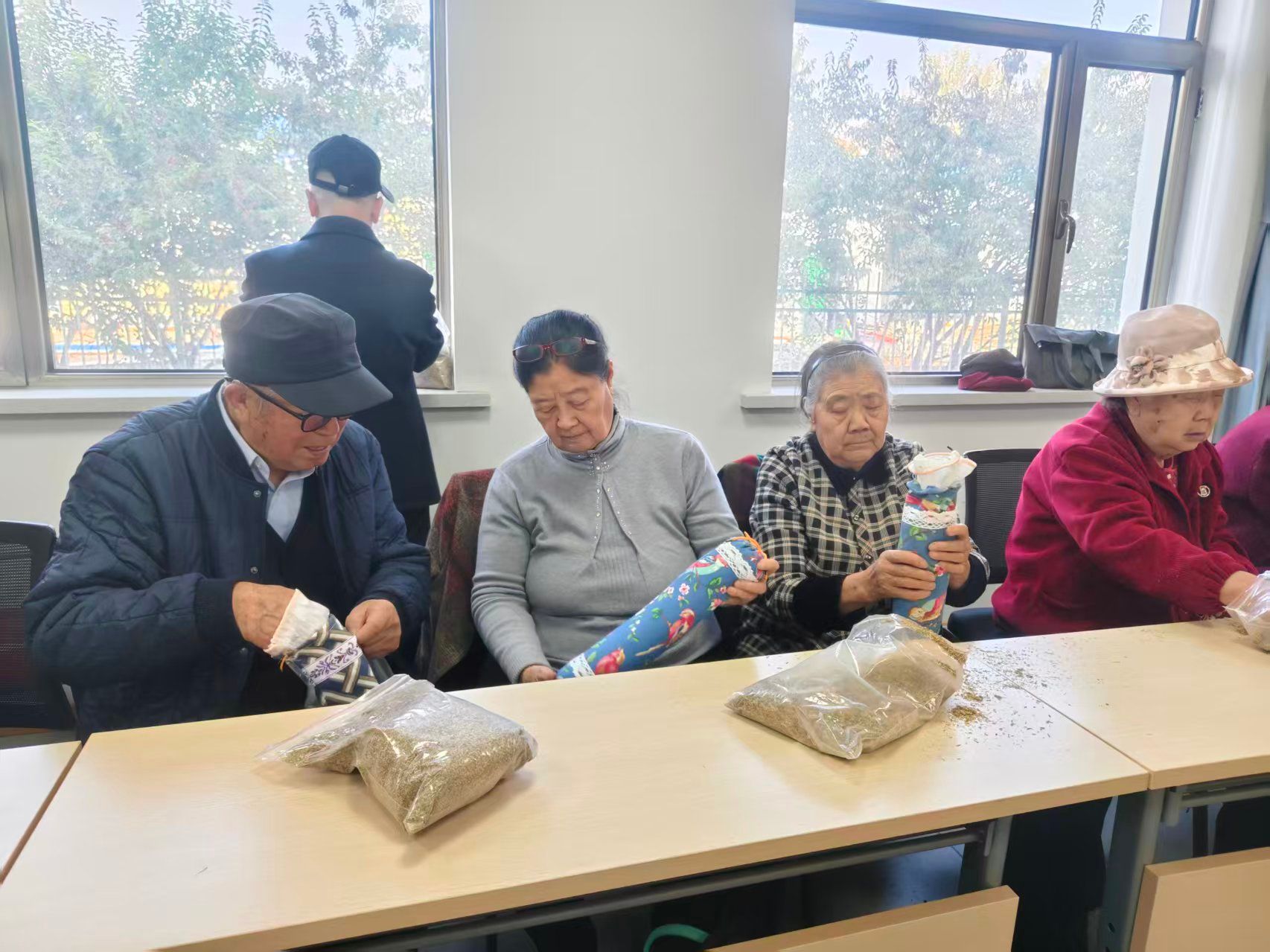 活动内容丰富多彩,主要分为趣味游戏和手工制作两大环节。在趣味游戏区域,设置了健康运球接力、你来比划我来猜等适合老同志参与的项目。游戏过程既充满趣味性,又兼顾了安全性,老同志们兴致勃勃,踊跃参与,现场欢声笑语不断。活动还安排了“手工养生锤制作”体验。在专业老师的耐心指导下,老同志们认真学习,亲手制作养生锤。大家相互交流制作技巧,分享养生心得,现场气氛温馨而融洽。亲手制作的养生锤不仅实用,更承载着学校对老同志们健康长寿的美好祝愿。